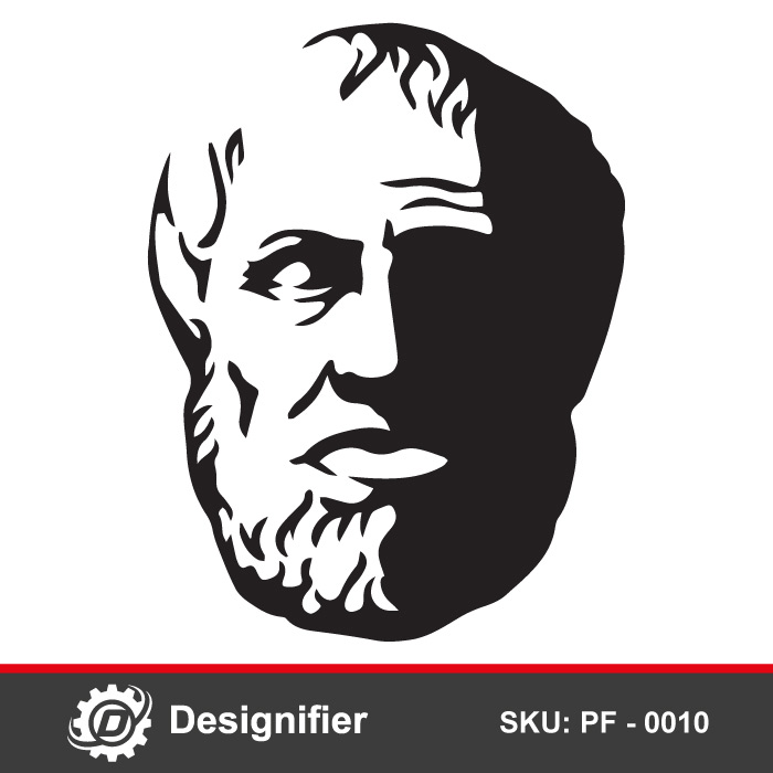 You can use Aristotle Stencil Face PF0010 to make wonderful wall Art to reach an exceptional and unconventional wall decor through the digital vector file DXF – CDR. Aristotle, the owner of Vector Art, represents an exceptional case of philosophers, as he was a multi-talented Greek philosopher. Educated by Plato and founding the Philosophical Peripatetic School, his writings cover many subjects including physics, biology, zoology, metaphysics, logic, ethics, aesthetics, theatre, music, poetry, rhetoric, and psychology. You can download and use a vector drawing of the face of the philosopher Aristotle to carve and decorate pieces of wood or glass or print them on T-shirts, walls, or any other surface.