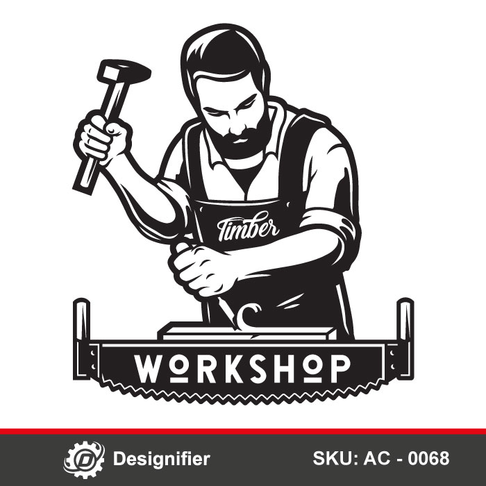 Discover the Bearded Carpenter Working DXF AC0068 design, a striking black-and-white vector illustration perfect for laser cutting enthusiasts. This detailed silhouette captures a rugged bearded craftsman in action, wielding a hammer in one hand and a chisel in the other as he shapes wood on a sturdy workbench. Ideal for creating custom wall art or…