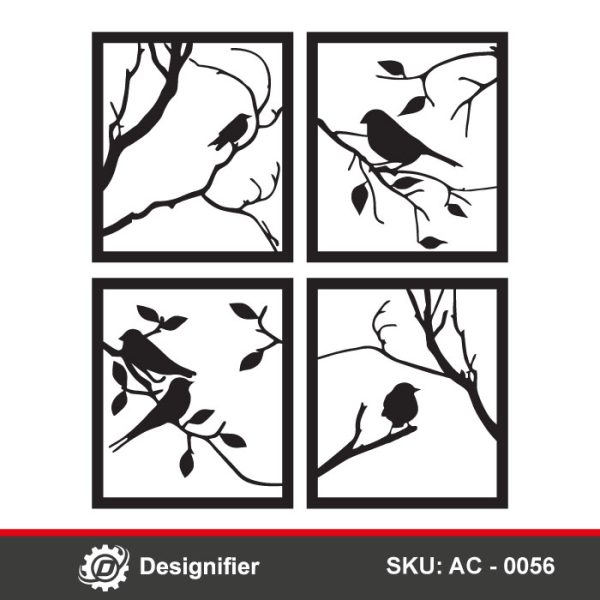 Birds On Branch Wall Art DXF AC0056 enables you to create Modern and unique Metal wall art by Laser cutting or Plasma and CNC, an innovative design, and fantastic abstract art. This design was created with the highest precision standards to be cut on the laser, plasma, and CNC cutters using all available materials such as wood, metal, and acrylic. You can also use Birds On Branch Wall Art DXF AC0056 in printing on the walls to make attractive decorations through paints or cutting stickers. Create awesome gifts for your customers or friends through this distinctive wall art.