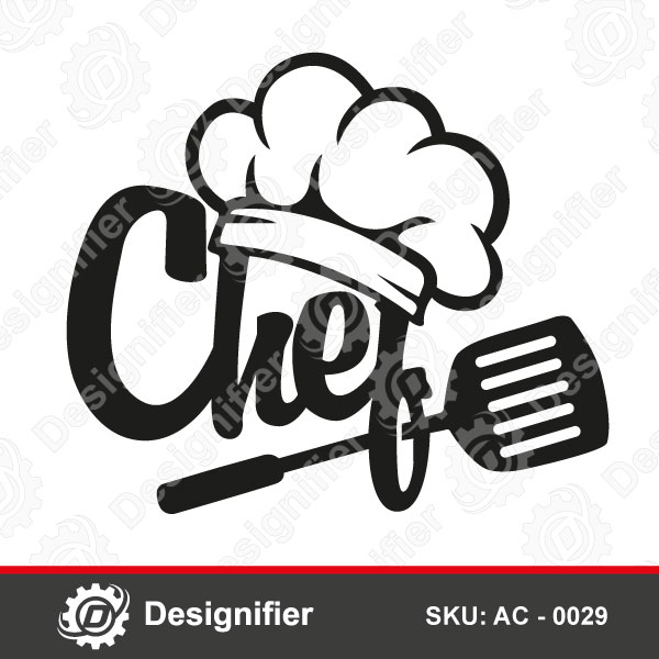 Through Chef Kitchen Design AC0029 it is possible to create wonderful decor in the kitchen, as it is characterized by the presence of the word “chef” with some well-known cooking tools and the famous hat that makes your kitchen decor a masterpiece where you can decorate the wall with an ideal accessory. Through the DXF SVG digital file, you can make a distinctive decorative shape of wood, metal, or acrylic, or you can print the shape on all kinds of clothes such as T-shirts, fabrics, or home accessories. You can make the best gifts for your friends, family, or clients if you work in the field of accessories and decoration.