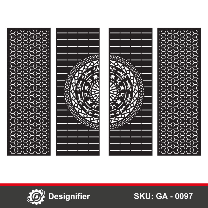 The Greek Medallion Gate DXF GA0097 is ideal for laser cutting and CNC applications. This design brings a timeless architectural presence to doors, combining artistic elegance with modern geometric precision.