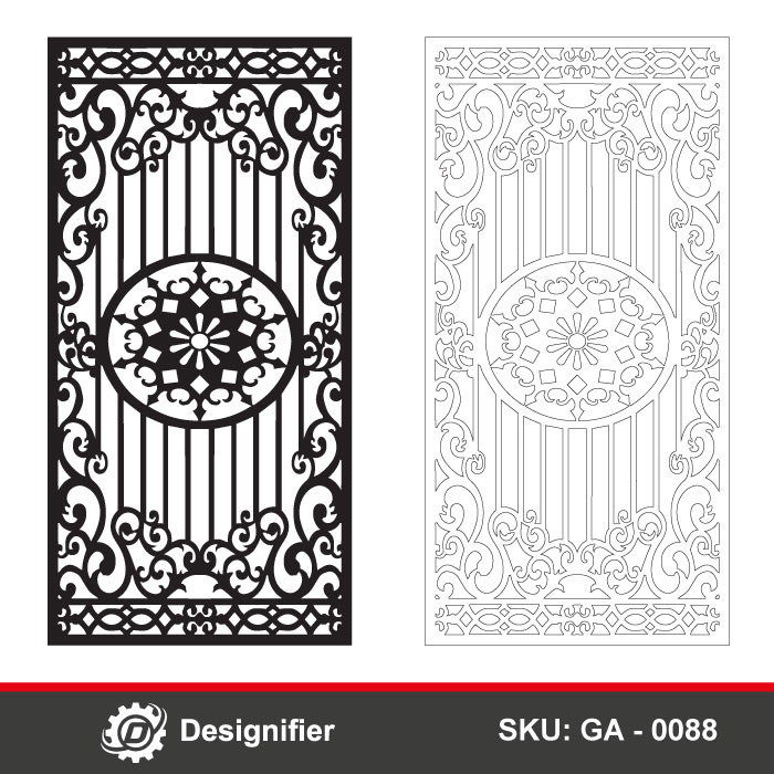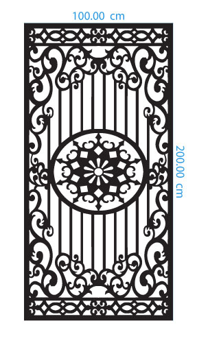 Charm your projects with this Intricate Scrollwork Door DXF GA0088 design, crafted for precision laser cutting and CNC applications. The elegant composition features a symmetrical layout with a central oval medallion, highlighted by a radiant floral motif and surrounded by flowing ornamental curves.