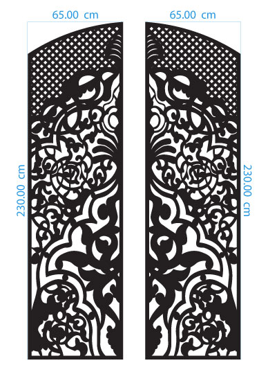 Compatible with wood, metal, acrylic, or MDF, the panels are ideal for various door and gate applications. Their symmetrical layout provides flexibility for double doors or paired panels, transforming interiors with timeless ornamental beauty and CNC or laser-cut accuracy.