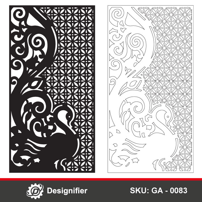 Swan Scrolls Geometric Door DXF GA0083 is perfect for laser cutting or CNC projects. This design can be used indoors, as wall panels or room dividers. Its intricate details and artistic blend of nature and geometry make it a versatile choice for both traditional and modern interiors.